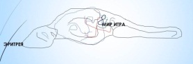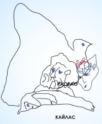 Первый – Питри. Если повернуть его на 180 градусов, то увидим курчавую женскую голову (второе лицо). Это снова Сара бессмертной расы Арианы. Ариана – это страна ариев («благородных») на территории теперешнего Ирана, однако, «Название Ариана распространяется на часть Персии и Мидии, а также на бактрийцев и согдийцев на севере; ибо они разговаривают на почти одном и том же языке, однако с небольшими различиями» (Википедия), что я тоже подтверждаю: на рельефе территории западной части России выбито это слово «Ариана», что я уже показала в другой книге. На груди лежащего в воде каменного ария видно лицо, очень похожее на знаменитую театральную маску (третий лик). Это Тор, как написано на его лбу, то есть, бог грома и молнии, сын Одина и Земли. Один – из расы асов, защищающий людей от великанов и чудовищ (Википедия). Из надписей следует, что это последний из ариев и «Шар питри. Римар. Тор ара. Жири ипи (святой). Ситра. Итра (рай). Икар. Уриил кара. Утри (утра) тор. Раора зри». Питри с санскрита переводится как «предки или создатели человечества». Всего они делятся на семь классов, три из которых бестелесные, арупа, и четыре с телом. В народной теологии говорится, что они были сотворены из бока Брамы. В "Манава Дхарма Шастре" они названы Лунными Предками" (сайт Академик). Ситра – это город в Бахрейне и царица древнего Египта, жена Рамсеса II (Википедия). Если посмотрим на рельефе Египта и Эритреи, то увидим соответствующее каменному изображение лежащего существа: