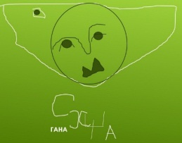 Здесь силуэт человека, держащего в руке шар. Среди космической материи, если присмотритесь, увидите буквы. На человеке в полный рост читаю: «Дира (дыра) Живы. Дом, храм Гора».