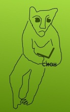 Если же перевернуть фотографию камня, то увидим глазастое существо, тоже держащее в руках книгу и имеющее на груди изображение морды медведя: