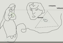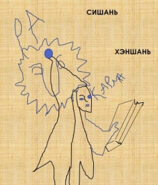 Город Сиши есть в Корее, там я уже нашла Бога Ра и воина, указывающего рукой на территорию Китая, они показаны в другой книге. Посмотрим, что изображено у города Сишань в Китае, название очень похоже на Сиши. Тут уже, точно, свита Шивы вместе с ним: