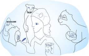 Далеко увели нас тексты от камня ущелья Дарданеллы, вернусь к нему. Упоминаемый в скальном тексте Кира уже найден мною у реки Кирилл, Тизу и Тиру тоже нашла. Тизи находится в Алжире, Тира – государство древних в Приднестровье. Там лежит на рельефе нарисованный лев. Поищем тигра. На рельефе около Тизи по побережью выглядывает тигр с когтистой лапой (там же расположен «пчеловод» в шляпе, уже открытый мною), ниже Тот с рулоном текстов зикры (молитвы) в одной руке, другой он поит воина Кира, выбитого на рельефе Испании, за которым сидит женщина, держащая человека на руках: