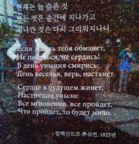 Александру Сергеевичу, русскому поэту, в Сеуле (Южная Корея) стоит памятник (фотография на обложке) с замечательным стихотворением: