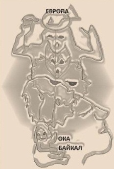 Напомню, земной Тор Руси находится в районе Урала, Аркаима до Монголии и держит его в руках зверо-подобная женщина в русском кокошнике (её копия в виде скалы находится в Сихотэ-Алинском заповеднике Тернейского района Приморья, в бухте Петрова):