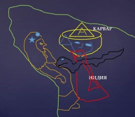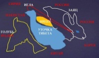 От него идёт «кол» (игла) к глазу зайца в центре Азии: