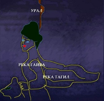 Если перевернуть спутниковый снимок рельефа, то увидим обещанную текстом радугу в виде очертания спины медведя, рядом выбита голова Акумис (чистой) и морда льва: