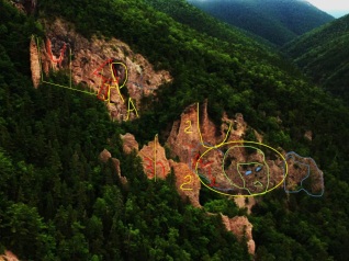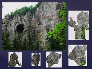 А пещера на Чёрном Шамане может быть доступна только скалолазам. В отверстии пещеры проглядывается тёмный провал вниз. У меня нет сведений, чтобы её кото-то исследовал. Два каменных комплекса объединяет наличие скал – зубьев: