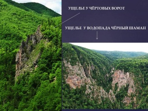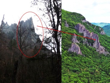И в ущелье Чёртовых Ворот сидит красавица-царевна, которую видно снизу только зимой, а летом она закрыта листьями деревьев: