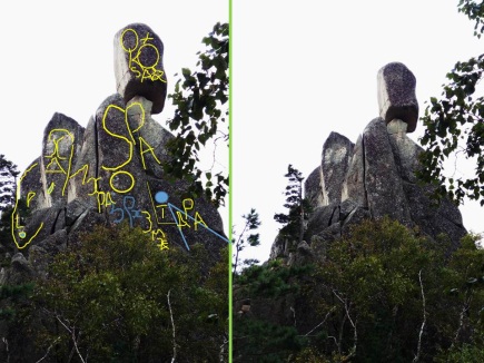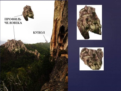 Другой мегалит, уже другого цвета, похож на голову великана с греческим носом и в чепчике: