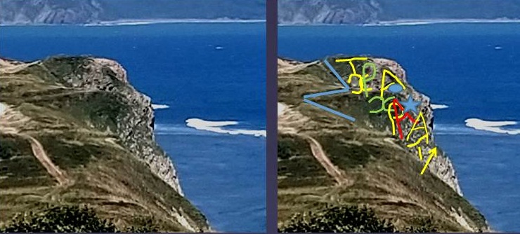Мыс Балюзек Ольгинского района Приморья тоже богат на скальные и мегалитические изображения. Мы прошлись по побережью у маяка и вот, что увидели: