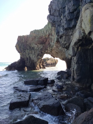 Под этим холмом располагается каменная арка, которая и была целью нашего путешествия в этот раз. Перед нами стоит великан, опирающаяся в дно моря рука которого похожа на пьющего животного, как в бухте Дубовая:
