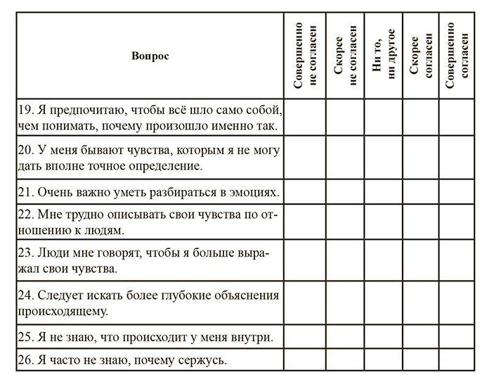 63, 73 балла – зона риска, свыше 74 баллов – наличие алекситимии.