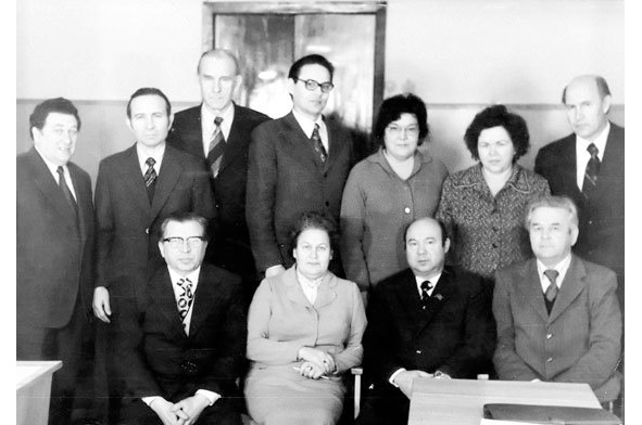 1978 год. Члены коллегии Министерства здравоохранения ТАССР. Верхний ряд: Б. Л. Якобсон (замминистра, главврач СЭС), М. Х. Вахитов, А. В. Гапоненко (замминистра), Ю. А. Анисимов (начальник горздравотдела Казани), Р. Х. Круглова (начальник планово-экономического отдела Минздрава), М. К. Зиева (замминистра), М. В. Буйлин (главврач РКБ). Нижний ряд: Я. Г. Павлухин (замминистра), А. Н. Гурьянова (замминистра), И. З. Мухутдинов (министр), Ф. Х. Фаткуллин (замминистра)