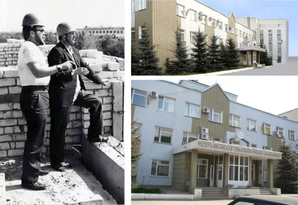 Построить здание в центре Казани, конечно, было непросто. Для того чтобы вписать его в тесную существующую застройку, нужно было получить все разрешения, финансирование, войти в план «Главтатстроя». Всю привязку проекта, размещение отделений, детали интерьера Александр Гришин продумывал сам. Многое делалось, как тогда говорили, «хозспособом». То есть часть коллектива оказывала помощь пациентам, а часть выходила на субботник. При этом сам главврач не только руководил, но и таскал балки и кирпичи. В 1975 году коллектив переехал в новое трёхэтажное здание, а в 1986-м закончилось строительство четырёхэтажного пристроя для централизованной зуботехнической лаборатории.