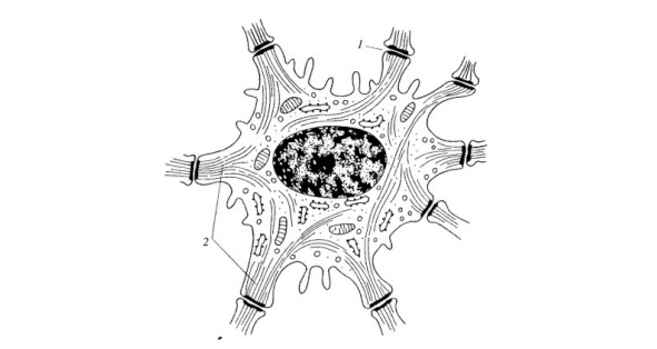 На рисунке: 1-кератиновые промежуточные филаменты (связи). 2-десмосомы. 22