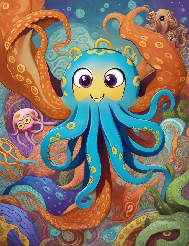И каким же чудом стало то, что в один из таких обычных дней, у Кальмара Диего и его жены из рода Осьминогов Тридакны родился Лео, маленький Осьминог с любящим сердцем, несокрушимой душой и добрыми глазами. Его щупальца переливались цветами радуги, и каждая щупальца при нажатии принимала любой из этих цветов. Когда вокруг всё было желтым, Лео добавил красок в жизнь родителей и обитателей королевства. На Лео выходили смотреть придворные, они улыбались, видя, как он сиял и сверкал.