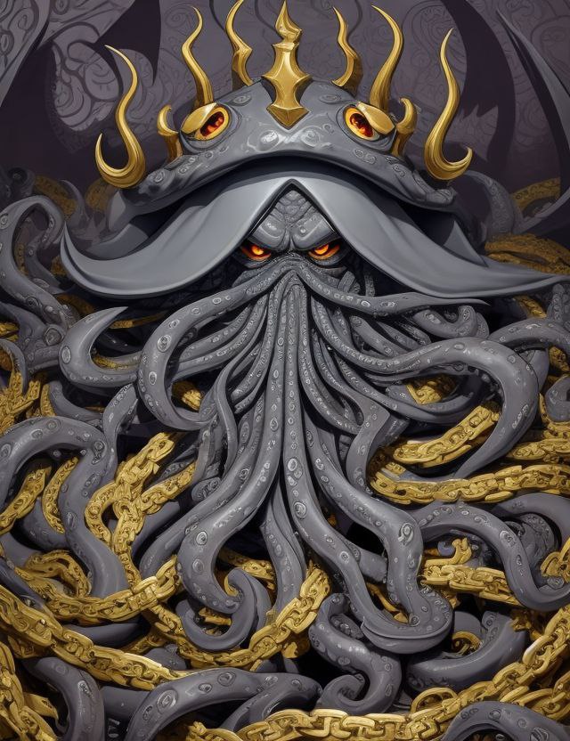 Морской вечер в королевстве Кальмара Диего всегда был наполнен волнением и благоговейным страхом. Темные воды трепетали под влиянием сил тайны и жестокости. Кальмар Диего, владыка Каракоума, сидел на троне из раковин и медленно двигал своими огромными щупальцами, выражая своё могущество.