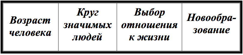 Каждый человек на протяжении всей своей жизни делает ВЫБОР под влиянием КРУГА ЗНАЧИМЫХ ЛЮДЕЙ, в результате чего формируется НОВООБРАЗОВАНИЕ (как очередной кирпичик) личности.