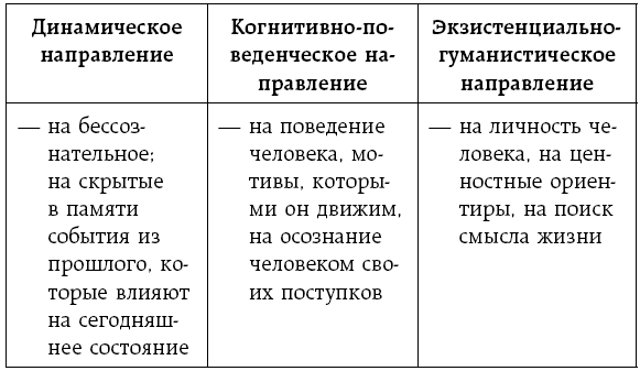 Психология очень многогранна. Многогранны и подходы к психологической помощи. Начну с самой простой классификации, с трех основных направлений.