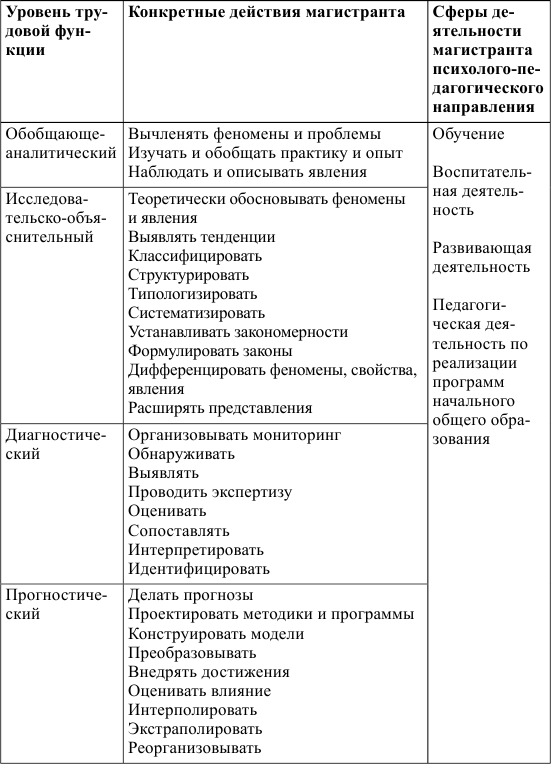 В обобщенном виде можно выделить следующие уровни основных функций магистранта, который детализирован конкретными действиями (представлены в табл. 13).