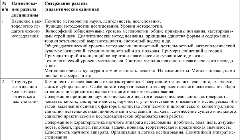Второй путь – апикальный, когда НИР обособлена в специальном модуле, обязательном для изучения студентами всех направлений подготовки. Применительно к анализируемой программе модуль имеет тему «Основы научно-исследовательской работы психолого-педагогического направления». Как любой модуль образовательной программы, он представляет собой законченную теоретико-практическую единицу, локально обособлен, является целостной единицей, что обеспечено синхронностью его образовательных процедур. Процедуры модуля выстроены в логике и позволяют наращивать компетенции данного модуля. Существенное отличие данного модуля от других модулей магистерской программы состоит в том, что он предлагается для изучения студентам на протяжении всего периода обучения в магистратуре; целесообразность этого мы докажем последующим текстом.