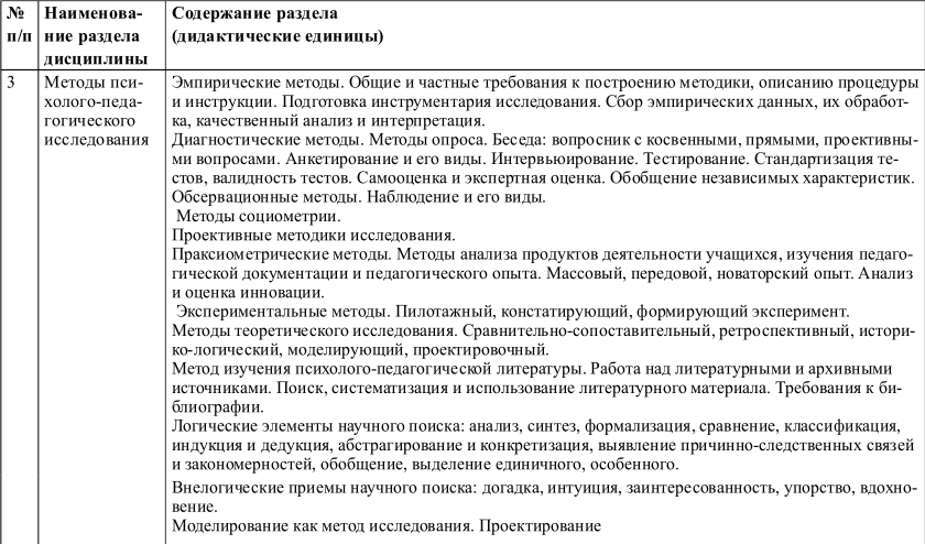 Обратимся к образовательным результатам модуля. Действующий в настоящее время ФГОС ВПО 3+ по направлению «Психолого-педагогическое образование» среди предлагаемых видов профессиональной деятельности, к которым готовятся выпускники программ магистратуры, предусматривает научно-исследовательскую деятельность и конкретизирует ее соответствующими профессиональными компетенциями (ПК-33 – ПК-41). То есть содержание модуля «Основы научно-исследовательской работы психолого-педагогического направления» соответствует базовой части федерального государственного образовательного стандарта высшего профессионального образования психолого-педагогического направления и обеспечивает формирование профессиональных компетенций в области научно-исследовательской деятельности.