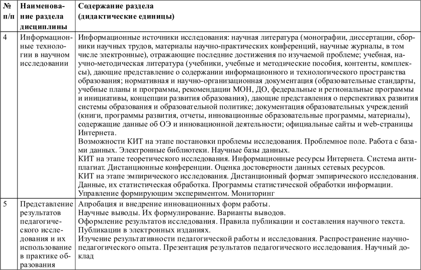 4) научно-организационное обеспечение проведения магистрантами самостоятельного прикладного психолого-педагогического исследования и оформления его в виде диссертации.