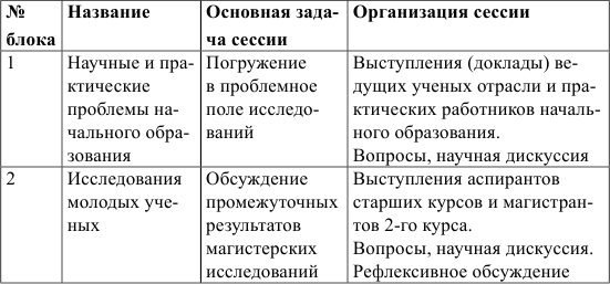 Блок 1 «Научные и практические проблемы начального образования» проводится аналогично декабрьской научной сессии, его задачей является расширение проблемного поля исследований.