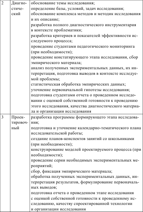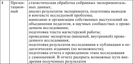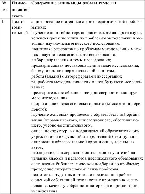 Осуществляется на протяжении всего периода обучения в магистратуре без отрыва от теоретического обучения. Программа предполагает необходимую научно-практическую подготовку магистранта для оформления прикладного психолого-педагогического исследования в виде диссертации. Основная линия работы магистранта над собственным исследованием закладывается в поэтапный план работы, начиная от этапа планирования исследования и завершая этапом оформления его результатов. Основными результатами работы магистранта на каждом из этапов будут: составление и презентация «Плана-проспекта» исследования, разработка и реализация на стажировочной площадке (школе) программы эмпирического исследования, презентация и защита результатов проведенного исследования. Особое внимание в программе уделяется формированию у магистранта навыков самостоятельной разработки и реализации программы эмпирического исследования в тесном сотрудничестве с преподавателями, ведущими НИРС, научным руководителем и педагогами-супервизорами.