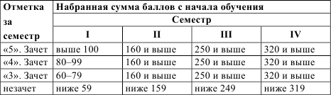 Перевод суммы набранных за семестр баллов в итоговую отметку
