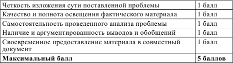 обсуждение содержания критериев и обоснование необходимости каждого из критериев должно предшествовать работе студентов над заданием;