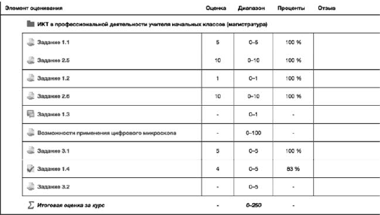 Кроме того, интернет-сервисы предоставляют множество возможностей оптимизировать организационные моменты оценивания: кто, когда и кому предоставляет результаты работы, какой способ коммуникации будет использоваться. Например, планирование контрольных мероприятий в групповом календаре, обмен файлами, сервисы мгновенных сообщений и т. д. Электронные таблицы можно использовать для распределения тем курсовых работ между студентами, установления сроков сдачи работ и консультаций, определения баз практики, записи на задания/курсы по выбору.