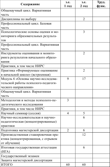 Учебный план магистратуры «Инновационная начальная школа» (фрагмент)