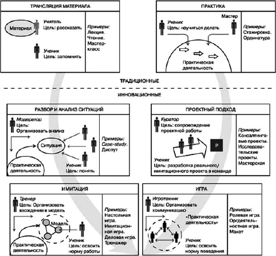 Традиционными массовыми формами являются лекции, конференции и сессии, которые в условиях практико-ориентированного обучения не теряют своего значения, но имеют специфику.