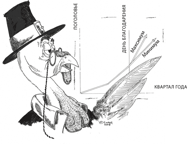 Рис. 4. Индюшка использует «доказательства»; не зная о Дне благодарения, она делает «точный» прогноз, основываясь на прошлых событиях. Ил. Джорджа Насра.