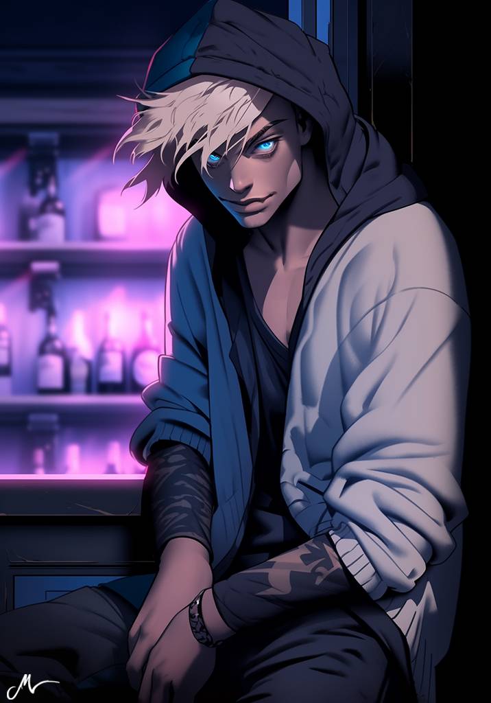 Прежде чем предстать пред ним, я успела за пару шагов растерять всю свою уверенность. Явно распознав моё замешательство, «глюк» просто нагло ухмылялся. И определённо тем и являлся, кем изначально и казался – наркоманом в последней стадии, если таковые имеются. Но глаза! Именно те! Уникальные! Неповторимого синего цвета, невообразимой глубины.