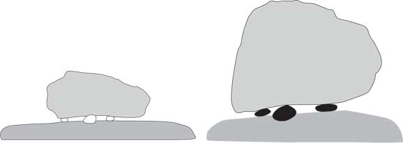 Резонатором здесь является многотонная глыба, а ее опоры как раз должны быть маленькими, буквально точечными, словно патефонные иголки, дабы не мешали системе резонировать. То есть гудеть в звуковом или инфразвуковом диапазоне.