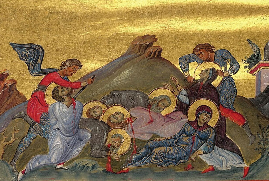 Мученичество святых Перпетуи, Фелицитаты, Ревоката, Сатурнина и Секундула. Менологий Василия II. 979–989. Ватиканская библиотека, Ватикан