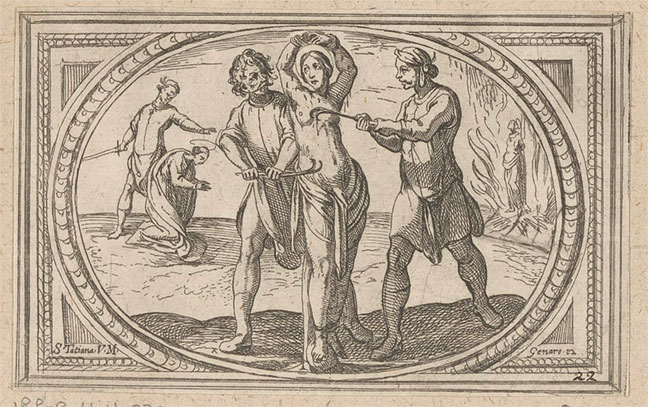 Ее обнажили и стали резать тело бритвами, но из ран на теле Татианы вместо крови потекло молоко, а в воздухе разлилось благоухание. Палачи отступились на какое-то время и вернули девушку в темницу, но потребовали, чтобы Татиана принесла жертву богине Диане. Ее привели к храму, она начала молиться, раздался удар грома, затем сверкнула молния, и статуя богини, жрецы и палачи обратились в пепел. В наказание девушку долго терзали, а потом снова отправили в тюрьму.