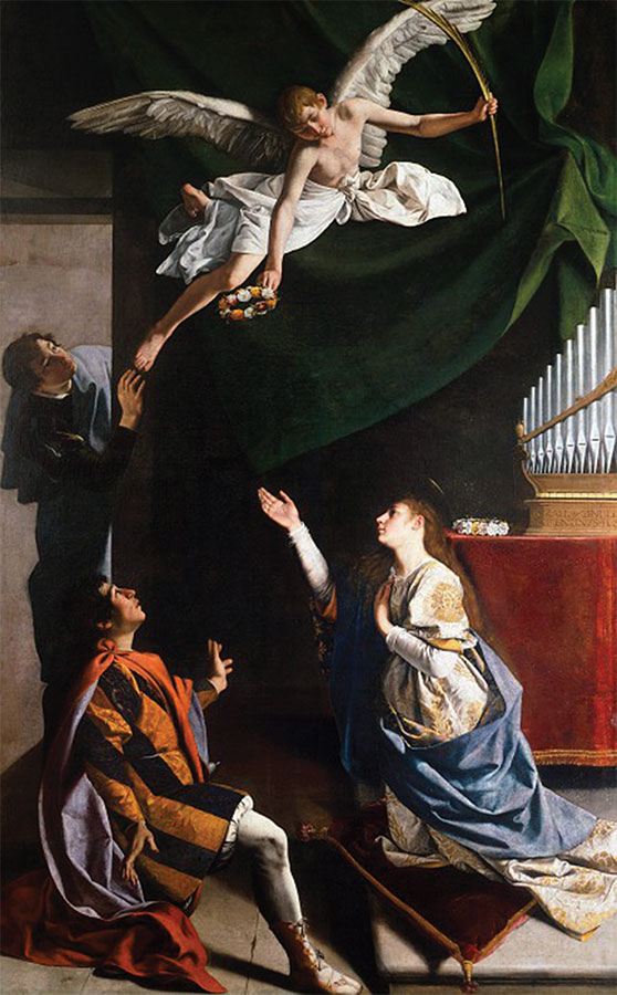 Сцену лицезрения ангела Цецилией, Валерианом и Тибурцием, например, представил Орацио Джентилески[18].
