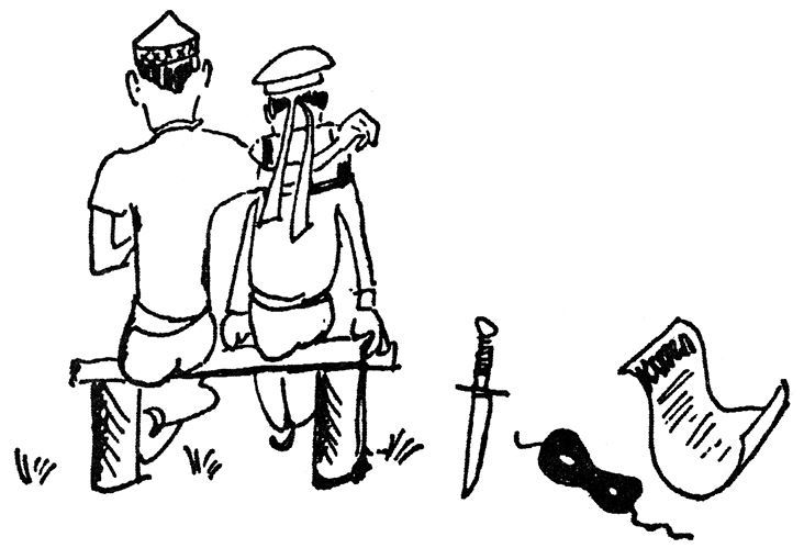 В маленьком чуланчике в подвале нашего дома мы проводили регулярно тайные собрания общества. Окошко без стекла, выходившее в палисадник, служило нам тайником. Если просунуть руку в окошко и сбоку у стенки отодвинуть доску, то в нише можно обнаружить наши сокровища: красную маску из бархата, старинную металлическую пороховницу, наполненную настоящим порохом, ржавый кинжал в ножнах и, главное, свернутую в трубку бумагу, на которой мы записали клятву верности друг другу. Клятву мы подписывали кровью – выдавливали ее из пальцев, предварительно уколов их гвоздем. Во время тайных совещаний наши сокровища извлекались, а текст клятвы непременно перечитывался. Потом мы по очереди играли кинжалом, а иногда, отсыпав щепотку пороха, поджигали его. Красную маску Коля надевал только один раз, когда мы подписывали клятву. С тех пор я доверял Николаю все свои тайны, он рассказывал мне все о себе.