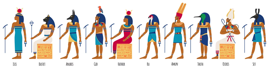 Учёные считают, что на мифологию Древнего Египта неизменно влиял Нил. Его разлив, приносящий на берега плодородные почвы, воспринимался как положительная сила, а наводнения, наоборот, как беда и влияние злых сил. Уже тогда боги научили людей наблюдать за звёздным небом, понимать исчисление времени и разбираться в азах астрономии. По мнению Захарии Ситчина, новых богов в Египте не было, просто на эту территорию пришли потомки старых богов Шумера. Например, тот же Ра был Мардуком.