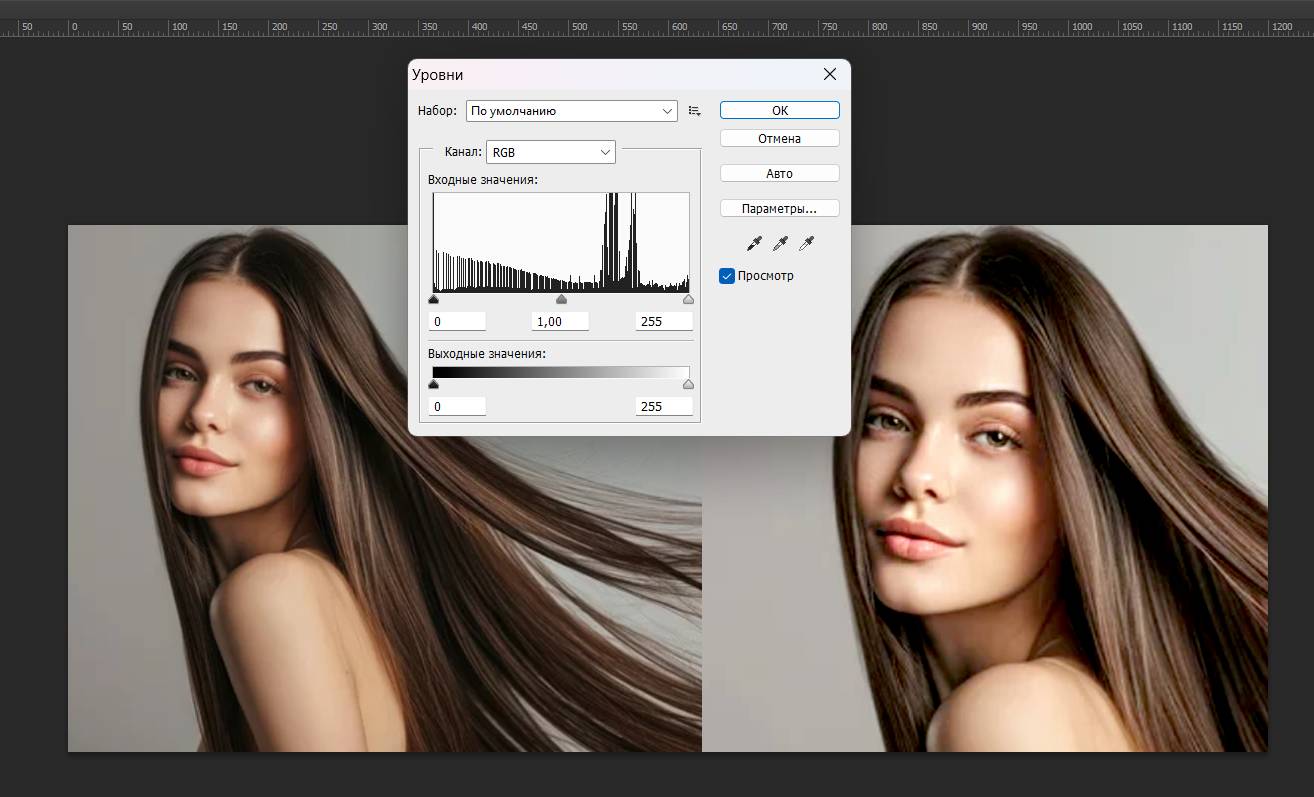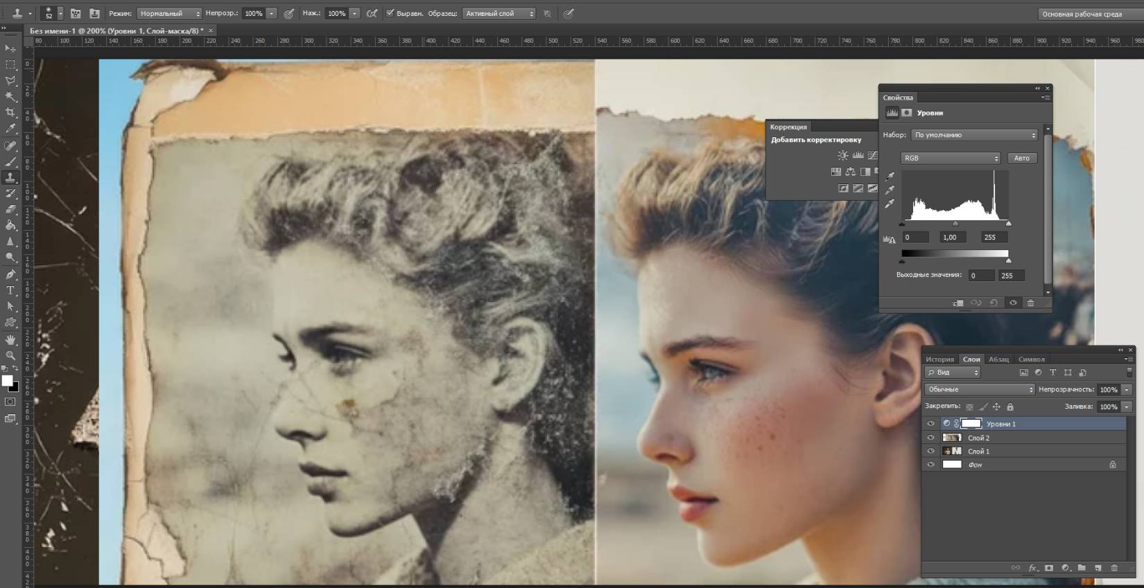 Коррекция тона в изображении: настройка баланса цветов, контрастности и яркости, для этого чаще всего применяется команда «Уровни» в программе Фотошоп.