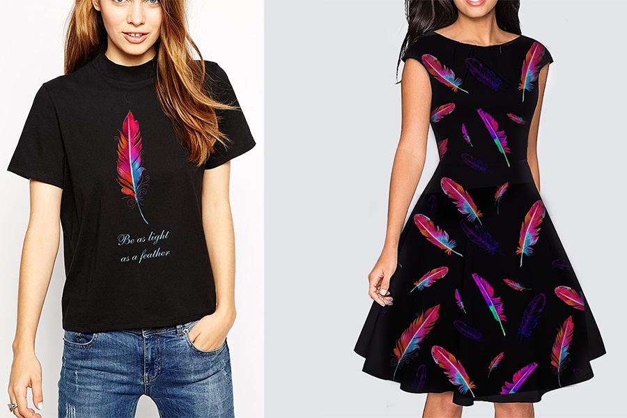 Рис. 9. Клипарт «перышко» на майке и платье. Клипарт создан Ириной Никулиной
