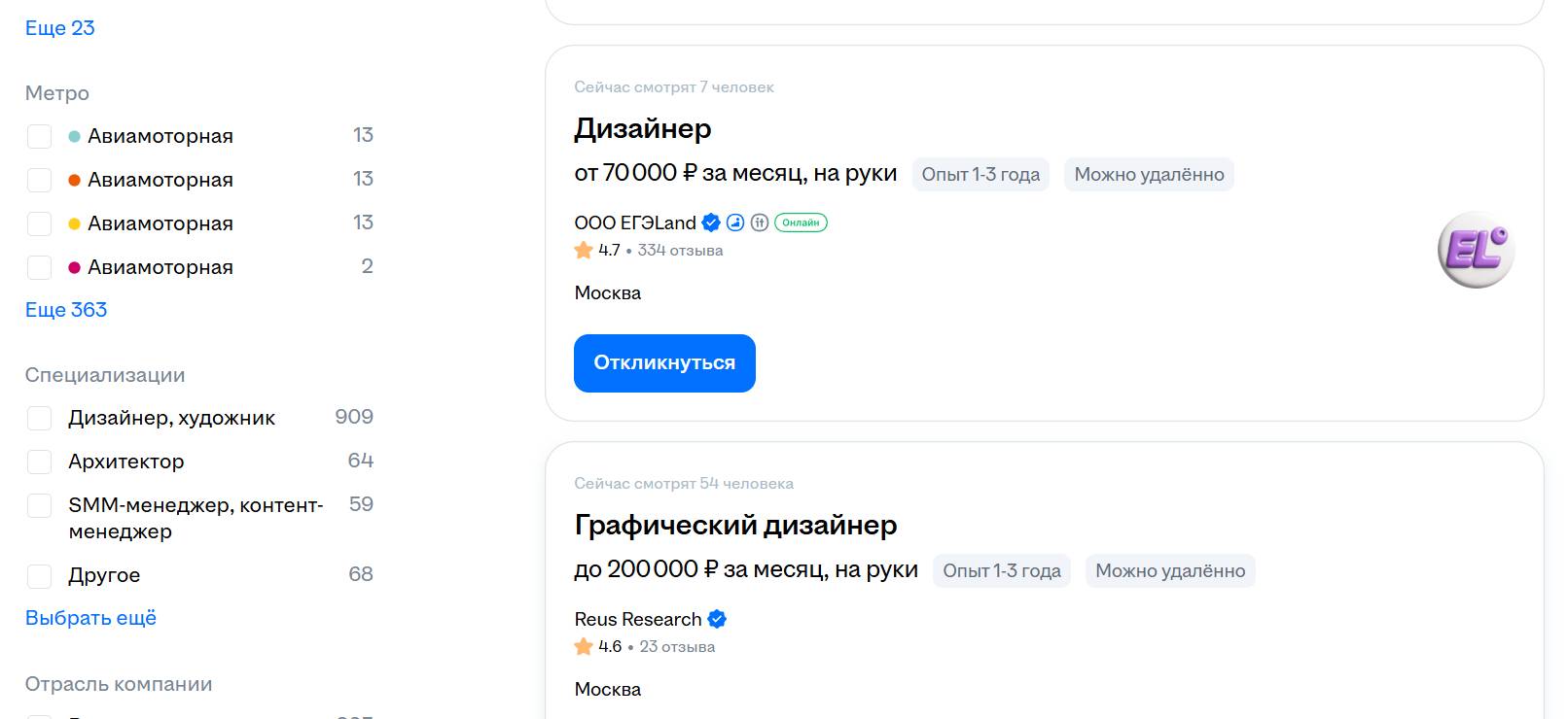 Рис. 1. Зарплата дизайнера на сайте работы