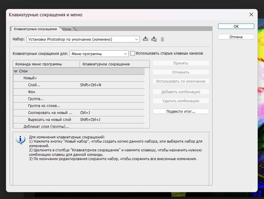 Рис. 11. Клавиатурные сокращения в Photoshop