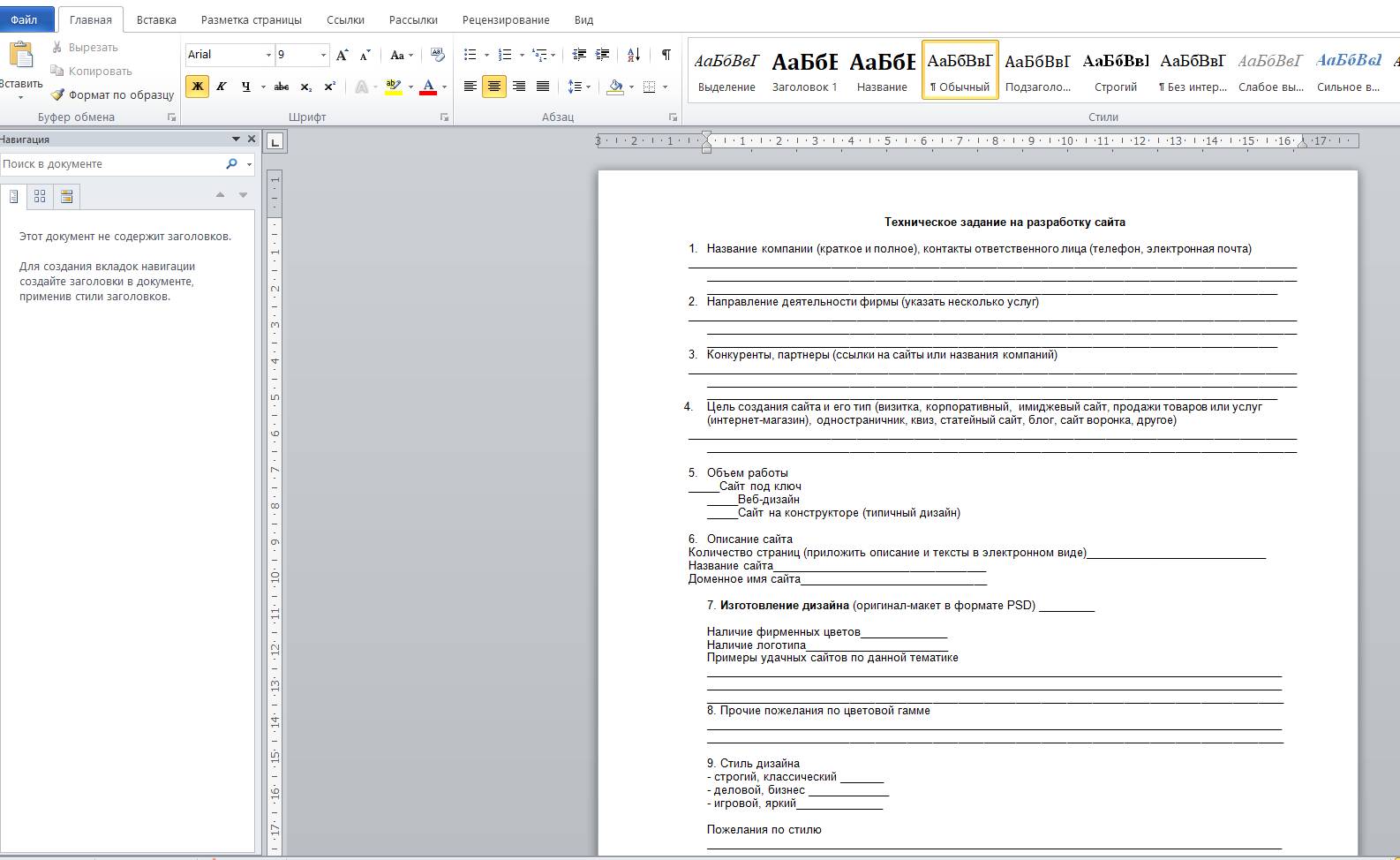 9. ТЗ показывает, чего недостает для разработки сайта, например, отсутствие логотипа или слогана.
