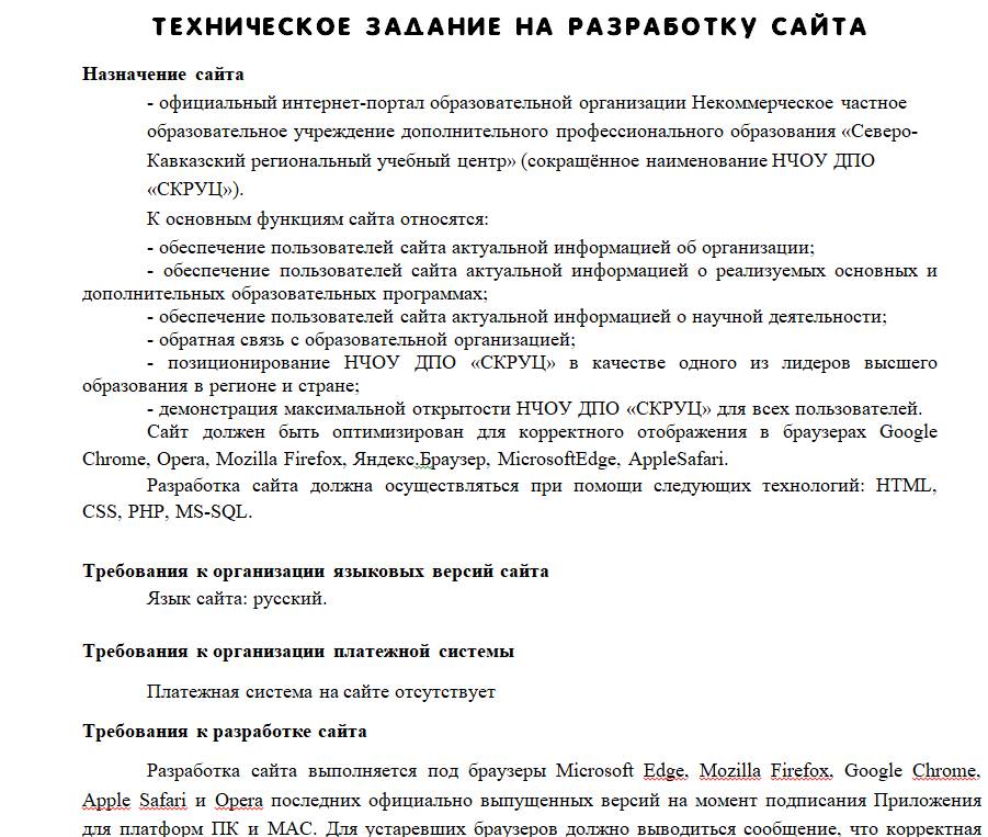 Рис. 3. Скриншот ТЗ в программе MS Word