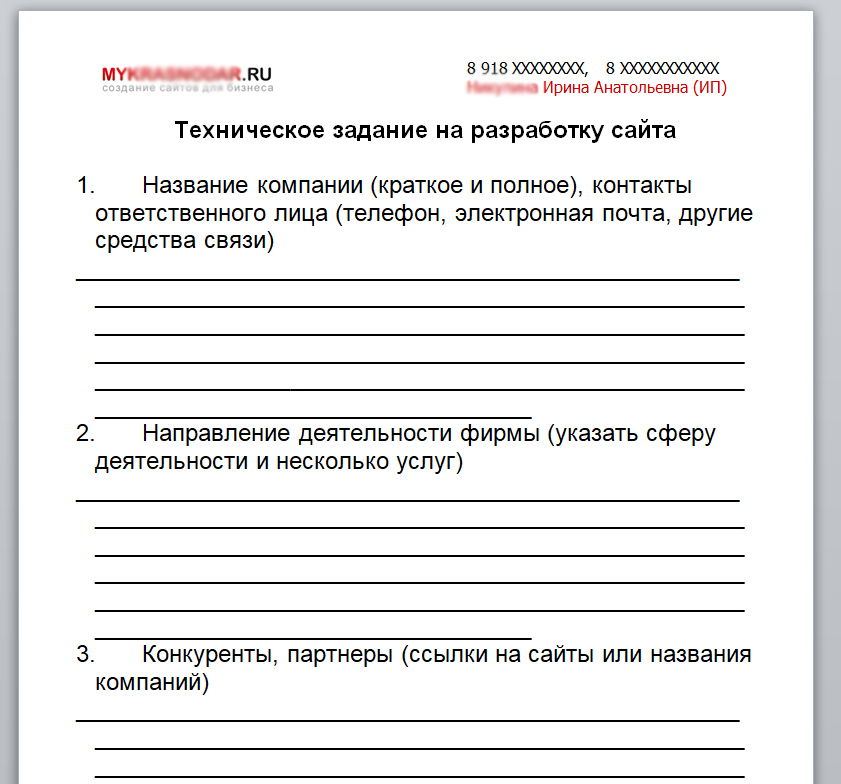 Подойдите к разработке сайта профессионально – именно от техзадания зависит внешний вид, функционал и продающие качества вашего сайта. Специальных знаний для заполнения ТЗ не требуется!