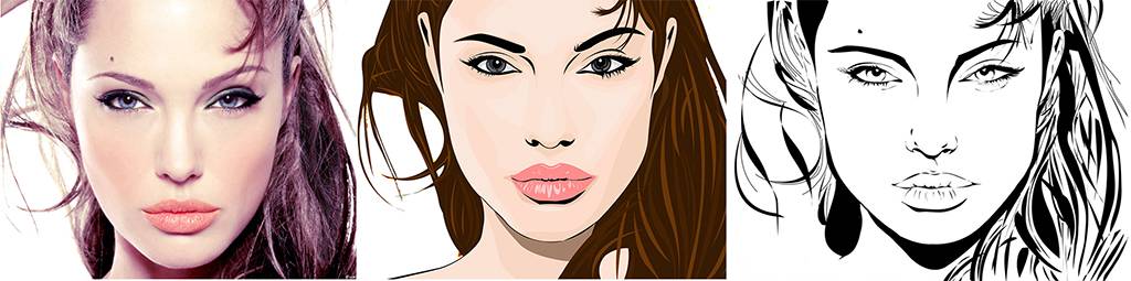 Перед вами на иллюстрации три портрета (см. рис.1), первый из них (слева) закодирован при помощи растровой графики (пикселями), а второй и третий – это векторные рисунки, созданные на основе фотографии (первого портрета).