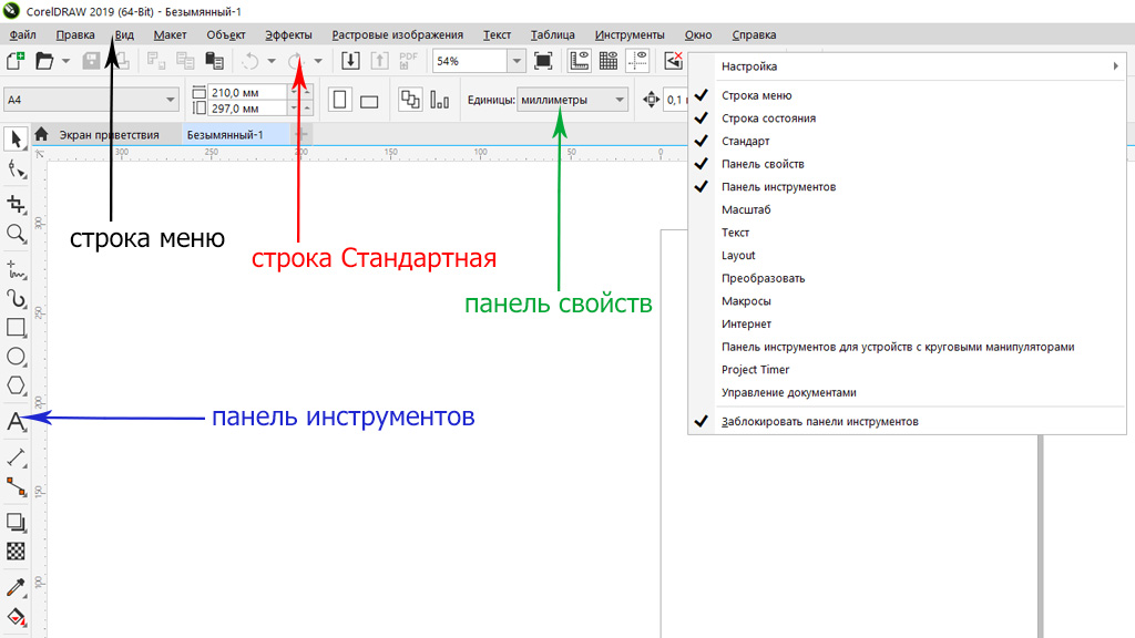 Давайте познакомимся с интерфейсом программы CorelDRAW.